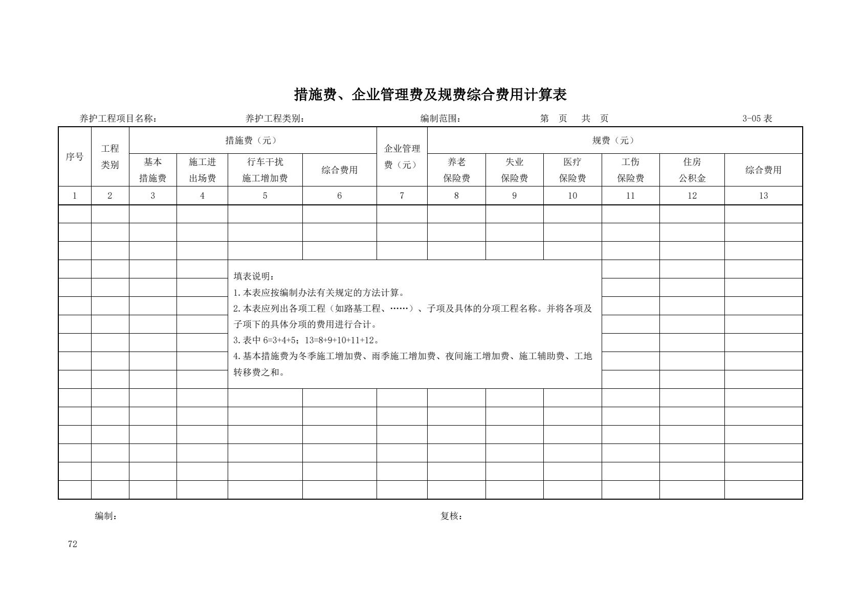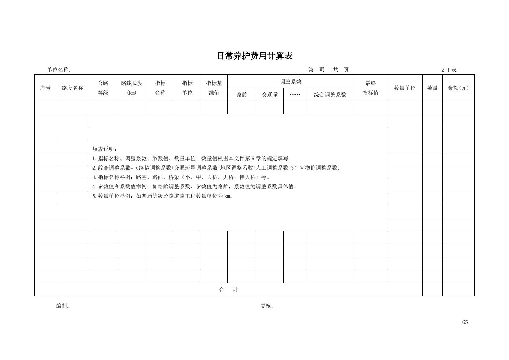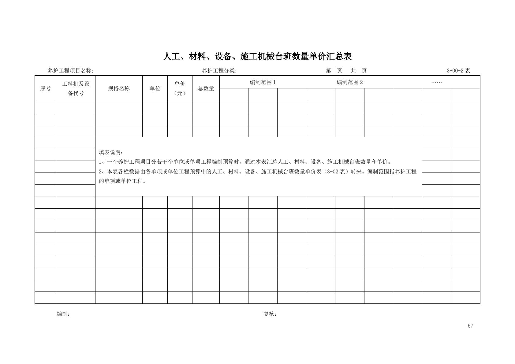 目录 搜索 各省养护编制办法重庆市公路养护预算编制办法- 渝交管养[2025] 32号封面前言目录预算编制办法重庆市公路养护工程预算编制办法-渝非内字[2018]023 号封面前言目录预算编制办法附录 A 重庆市公路养护工程预算项目表附录 B 封面、目录及预算表格样式附录 C 公路专项调查及检测评定费用参考表湖南省农村公路养护预算编制办法(2020)目次前言预算编制办法附录B附录C浙江省公路养护工程预算编制办法-[2005] 244号封面前言目录预算编制办法内蒙古自治区公路养护工程编制办法-内交发[2019] 437号目录预算编制办法附录一 封面、目录及概(预)算表格样式附录二 养护工程项目表安徽省公路养护预算编制办法(2018)前言目录预算编制办法附录A 养护工程预算封面、目录及预算表格样式 附录B 养护工程预算项目表附录C 设备与材料的划分标准山东省公路养护工程预算编制办法(2010)封面目录总则预算编制办法预算费用标准和计算方法附录二 封面、扉页、目录及预算表格样式附录三 人工、材料代号、基价表湖南省养护定额及编制办法(2014)封面目次前言公路养护工程预算编制办法附录A 湖南省公路养护工程预算定额(单独成册)附录B 养护工程预算项目表附录C 封面、目录及预算表格样式广西省公路养护工程预算编制办法(2020)封面目次前言引言公路养护预算编制办法附录A 广西公路养护工程预算定额及机械台班费用定额附录B 预算项目表附录C 封面、目录及预算表格样式甘肃省公路养护工程预算编制办法(2021)目录1 总 则2 预算编制方法2.1 预算编制依据2.2 预算文件组成2.3 预算项目2.4 预算费用组成3 预算费用标准和计算方法3.1 养护建筑安装工程费3.2 土地使用及拆迁补偿费3.3 养护工程其他费用3.4 预备费3.5 各项费用的计算程序及计算方式附录A附录B附录C河南省高速公路养护预算编制办法-豫交文〔2023〕6号目次1 范围2 规范性引用文件3 术语和定义4 总则5 养护预算总费用组成6 养护预算费用标准和计算方法6.1 基本规定6.2 日常养护预算费用组成6.3 养护工程预算费用组成6.4 建筑安装工程费6.5 土地使用及补偿费6.6 养护工程其他费6.7 预备费6.8 各项费用的计算程序及计算方式附录A附录B附录B.1 日常养护预算项目表附录 B.2养护工程预算项目表附录C内蒙古自治区高速公路养护工程预算编制办法(2022)封面目次前言高速公路养护工程预算编制办法附录A 高速公路养护工程预算定额附录B 封面、目录及预算表格样式附录C 养护工程项目表黑龙江省普通国省道养护预算编制办法(2023)目次1 总则2 费用组成3 养护费用附录A 公路养护预算表格样式附录 B 养护工程预算项目表附录 C 设备与材料的划分标准四川省普通国省道养护预算编制办法(2025)目录总则养护预算总费用组成养护检查费日常养护费养护工程费组成和计算方法附录 A 普通国省道养护预算表格样式附录 B 养护工程预算项目表附录 C 设备与材料的划分标准附录 D 四川省冬季施工气温区划分表附录 E 四川省雨季施工雨量区及雨季期划分表本编制办法用词用语说明陕西省干线公路养护工程预算编制规范(2025)目录规范山东省普通国省公路养护预算编制办法-鲁交公路[2024] 5号封面前言目录预算编制办法(试行稿)湖南省地方标准公路日常养护预算编制办法(2022)封面前言目录预算编制办法(试行稿)湖南省地方标准公路养护工程预算编制办法(2022)封面前言目录预算编制办法安徽省高速公路养护工程预算编制办法及定额(2019)封面前言目录预算编制办法湖北高速公路养护预算编制办法(2023)封面目录预算编制办法贵州省公路养护工程预算编制办法-黔交建设[2017] 293号封面目录预算编制办法贵州公路养护小修保养工程指标预算编制办法-黔交建设[2017] 294号封面目录预算编制办法山西省普通国省干线公路养护工程预算编制指南(2024)封面目录前言预算编制办法青海省公路养护工程预算编制指南(2022)封面目录前言预算编制办法青海省公路养护小修保养工程指标预算编制指南(2022)封面前言预算编制办法西藏自治区普通国省公路养护工程预算编制办法(2023)封面前言目录预算编制办法各省编制办法补充规定2018吉林(吉交造价[2019]162号)广西(桂交建管发[2019]39号)广西(桂交监造价发[2023] 1号)河北(冀交基[2019]179号)黑龙江(黑交发[2019]90号)山东(鲁交建管[2019]25号)湖南(湘交基建[2019]74号)江西(赣交建管字[2019]23号)北京市(京路造价发[2020]16号)辽宁(辽交公水发[2019]183号)福建(闽交建〔2019〕31 号)内蒙古(内交发[2019]338号)四川(川交函〔2024〕497 号)重庆(渝交路[2019]29号)贵州(黔交建设〔2019〕65号)江苏(苏交建〔2019〕22号)湖北(鄂交建[2019]187号)浙江 (浙交[2019]116号)广东(粤交基[2019]544号)广东(粤交基[2022]67号)甘肃(甘交建设[2020]6号)西藏(藏交发〔2019〕300号)河南(豫交文[2019]274号)海南(琼交规划[2019]387号)北京(京路造价发[2019]5号)天津(津交发[2019]137号)上海(沪建标定联[2019]317号)宁夏(宁交办发[2019]165号)云南(云交建设[2019]34号)山西(晋交建管[2019]282号)青海(青交办建管[2019]184号)陕西(陕交发[2019]93号)安徽(皖交建管函[2019]210号)新疆(新交综〔2019〕26 号)新疆(新交规【2021】1号文) 暂无相关搜索结果! 本文档由 纵横软件 发布 预算编制办法 文档更新时间: 2025-11-26 17:57 作者:贾乐