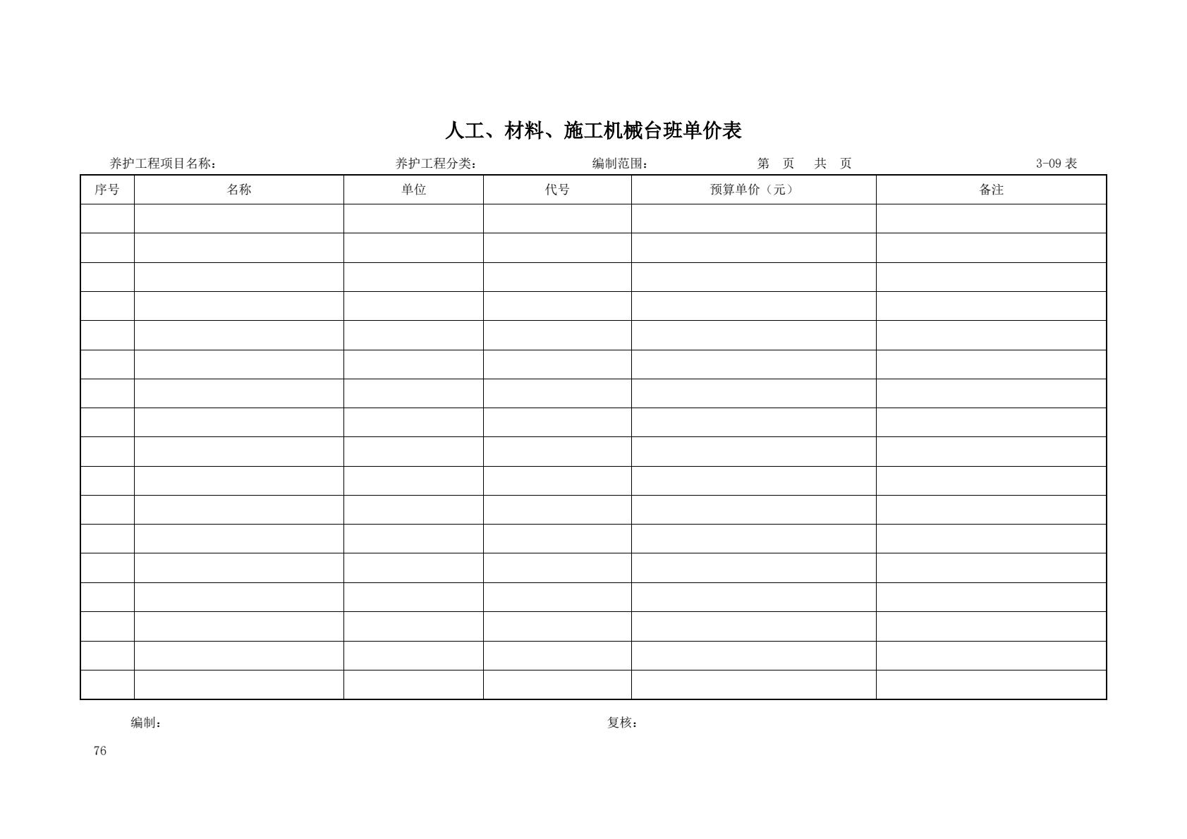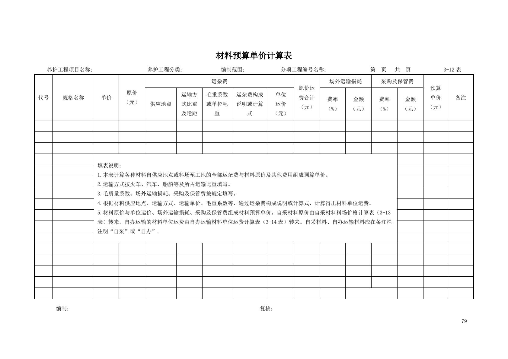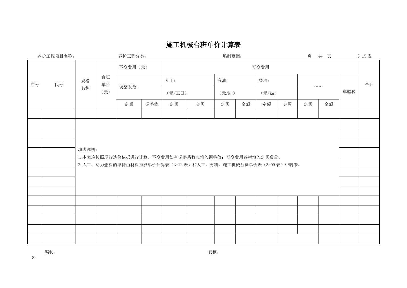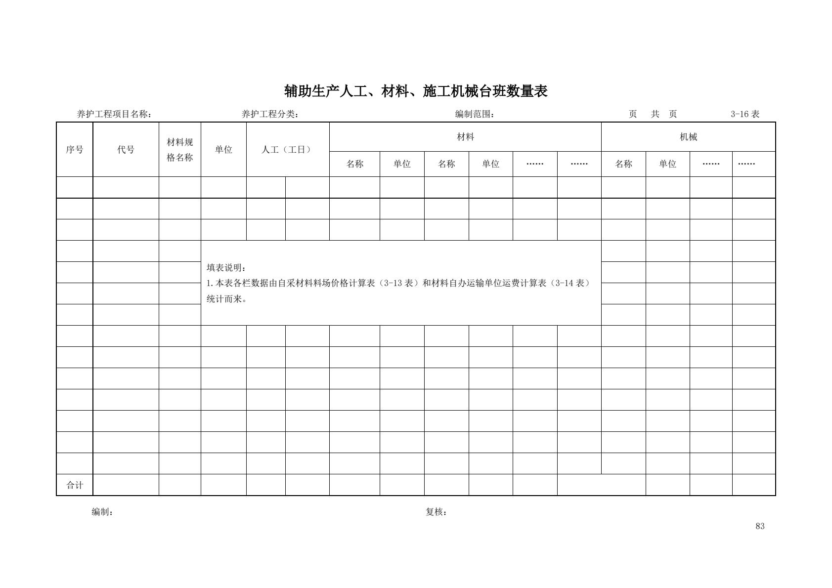 目录 搜索 各省养护编制办法重庆市公路养护预算编制办法- 渝交管养[2025] 32号封面前言目录预算编制办法重庆市公路养护工程预算编制办法-渝非内字[2018]023 号封面前言目录预算编制办法附录 A 重庆市公路养护工程预算项目表附录 B 封面、目录及预算表格样式附录 C 公路专项调查及检测评定费用参考表湖南省农村公路养护预算编制办法(2020)目次前言预算编制办法附录B附录C浙江省公路养护工程预算编制办法-[2005] 244号封面前言目录预算编制办法内蒙古自治区公路养护工程编制办法-内交发[2019] 437号目录预算编制办法附录一 封面、目录及概(预)算表格样式附录二 养护工程项目表安徽省公路养护预算编制办法(2018)前言目录预算编制办法附录A 养护工程预算封面、目录及预算表格样式 附录B 养护工程预算项目表附录C 设备与材料的划分标准山东省公路养护工程预算编制办法(2010)封面目录总则预算编制办法预算费用标准和计算方法附录二 封面、扉页、目录及预算表格样式附录三 人工、材料代号、基价表湖南省养护定额及编制办法(2014)封面目次前言公路养护工程预算编制办法附录A 湖南省公路养护工程预算定额(单独成册)附录B 养护工程预算项目表附录C 封面、目录及预算表格样式广西省公路养护工程预算编制办法(2020)封面目次前言引言公路养护预算编制办法附录A 广西公路养护工程预算定额及机械台班费用定额附录B 预算项目表附录C 封面、目录及预算表格样式甘肃省公路养护工程预算编制办法(2021)目录1 总 则2 预算编制方法2.1 预算编制依据2.2 预算文件组成2.3 预算项目2.4 预算费用组成3 预算费用标准和计算方法3.1 养护建筑安装工程费3.2 土地使用及拆迁补偿费3.3 养护工程其他费用3.4 预备费3.5 各项费用的计算程序及计算方式附录A附录B附录C河南省高速公路养护预算编制办法-豫交文〔2023〕6号目次1 范围2 规范性引用文件3 术语和定义4 总则5 养护预算总费用组成6 养护预算费用标准和计算方法6.1 基本规定6.2 日常养护预算费用组成6.3 养护工程预算费用组成6.4 建筑安装工程费6.5 土地使用及补偿费6.6 养护工程其他费6.7 预备费6.8 各项费用的计算程序及计算方式附录A附录B附录B.1 日常养护预算项目表附录 B.2养护工程预算项目表附录C内蒙古自治区高速公路养护工程预算编制办法(2022)封面目次前言高速公路养护工程预算编制办法附录A 高速公路养护工程预算定额附录B 封面、目录及预算表格样式附录C 养护工程项目表黑龙江省普通国省道养护预算编制办法(2023)目次1 总则2 费用组成3 养护费用附录A 公路养护预算表格样式附录 B 养护工程预算项目表附录 C 设备与材料的划分标准四川省普通国省道养护预算编制办法(2025)目录总则养护预算总费用组成养护检查费日常养护费养护工程费组成和计算方法附录 A 普通国省道养护预算表格样式附录 B 养护工程预算项目表附录 C 设备与材料的划分标准附录 D 四川省冬季施工气温区划分表附录 E 四川省雨季施工雨量区及雨季期划分表本编制办法用词用语说明陕西省干线公路养护工程预算编制规范(2025)目录规范山东省普通国省公路养护预算编制办法-鲁交公路[2024] 5号封面前言目录预算编制办法(试行稿)湖南省地方标准公路日常养护预算编制办法(2022)封面前言目录预算编制办法(试行稿)湖南省地方标准公路养护工程预算编制办法(2022)封面前言目录预算编制办法安徽省高速公路养护工程预算编制办法及定额(2019)封面前言目录预算编制办法湖北高速公路养护预算编制办法(2023)封面目录预算编制办法贵州省公路养护工程预算编制办法-黔交建设[2017] 293号封面目录预算编制办法贵州公路养护小修保养工程指标预算编制办法-黔交建设[2017] 294号封面目录预算编制办法山西省普通国省干线公路养护工程预算编制指南(2024)封面目录前言预算编制办法青海省公路养护工程预算编制指南(2022)封面目录前言预算编制办法青海省公路养护小修保养工程指标预算编制指南(2022)封面前言预算编制办法西藏自治区普通国省公路养护工程预算编制办法(2023)封面前言目录预算编制办法各省编制办法补充规定2018吉林(吉交造价[2019]162号)广西(桂交建管发[2019]39号)广西(桂交监造价发[2023] 1号)河北(冀交基[2019]179号)黑龙江(黑交发[2019]90号)山东(鲁交建管[2019]25号)湖南(湘交基建[2019]74号)江西(赣交建管字[2019]23号)北京市(京路造价发[2020]16号)辽宁(辽交公水发[2019]183号)福建(闽交建〔2019〕31 号)内蒙古(内交发[2019]338号)四川(川交函〔2024〕497 号)重庆(渝交路[2019]29号)贵州(黔交建设〔2019〕65号)江苏(苏交建〔2019〕22号)湖北(鄂交建[2019]187号)浙江 (浙交[2019]116号)广东(粤交基[2019]544号)广东(粤交基[2022]67号)甘肃(甘交建设[2020]6号)西藏(藏交发〔2019〕300号)河南(豫交文[2019]274号)海南(琼交规划[2019]387号)北京(京路造价发[2019]5号)天津(津交发[2019]137号)上海(沪建标定联[2019]317号)宁夏(宁交办发[2019]165号)云南(云交建设[2019]34号)山西(晋交建管[2019]282号)青海(青交办建管[2019]184号)陕西(陕交发[2019]93号)安徽(皖交建管函[2019]210号)新疆(新交综〔2019〕26 号)新疆(新交规【2021】1号文) 暂无相关搜索结果! 本文档由 纵横软件 发布 预算编制办法 文档更新时间: 2025-11-26 17:57 作者:贾乐