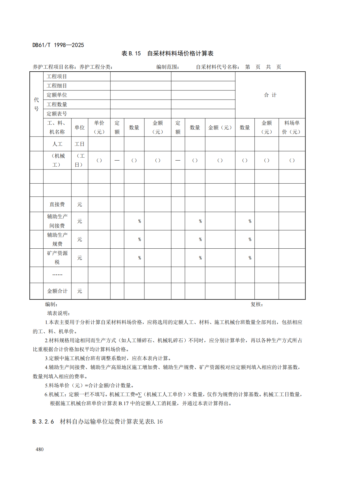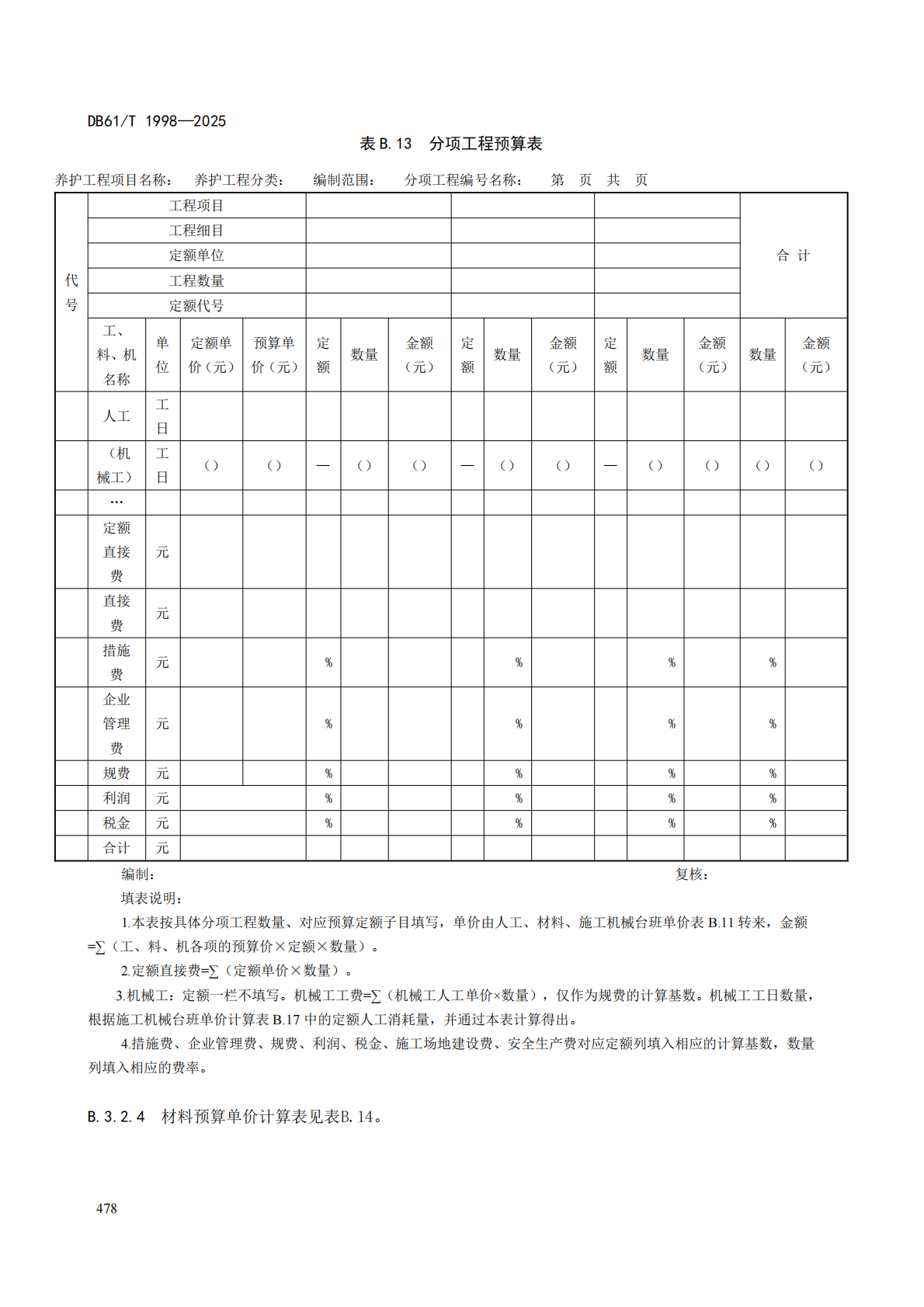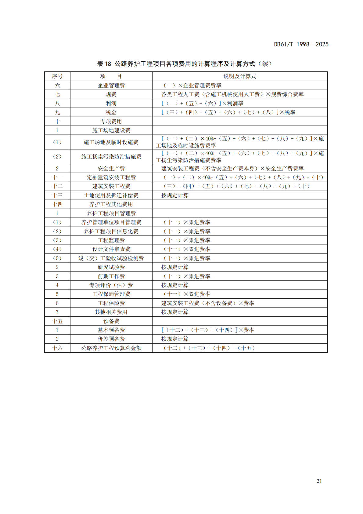 目录 搜索 各省养护编制办法重庆市公路养护预算编制办法- 渝交管养[2025] 32号封面前言目录预算编制办法重庆市公路养护工程预算编制办法-渝非内字[2018]023 号封面前言目录预算编制办法附录 A 重庆市公路养护工程预算项目表附录 B 封面、目录及预算表格样式附录 C 公路专项调查及检测评定费用参考表湖南省农村公路养护预算编制办法(2020)目次前言预算编制办法附录B附录C浙江省公路养护工程预算编制办法-[2005] 244号封面前言目录预算编制办法内蒙古自治区公路养护工程编制办法-内交发[2019] 437号目录预算编制办法附录一 封面、目录及概(预)算表格样式附录二 养护工程项目表安徽省公路养护预算编制办法(2018)前言目录预算编制办法附录A 养护工程预算封面、目录及预算表格样式 附录B 养护工程预算项目表附录C 设备与材料的划分标准山东省公路养护工程预算编制办法(2010)封面目录总则预算编制办法预算费用标准和计算方法附录二 封面、扉页、目录及预算表格样式附录三 人工、材料代号、基价表湖南省养护定额及编制办法(2014)封面目次前言公路养护工程预算编制办法附录A 湖南省公路养护工程预算定额(单独成册)附录B 养护工程预算项目表附录C 封面、目录及预算表格样式广西省公路养护工程预算编制办法(2020)封面目次前言引言公路养护预算编制办法附录A 广西公路养护工程预算定额及机械台班费用定额附录B 预算项目表附录C 封面、目录及预算表格样式甘肃省公路养护工程预算编制办法(2021)目录1 总 则2 预算编制方法2.1 预算编制依据2.2 预算文件组成2.3 预算项目2.4 预算费用组成3 预算费用标准和计算方法3.1 养护建筑安装工程费3.2 土地使用及拆迁补偿费3.3 养护工程其他费用3.4 预备费3.5 各项费用的计算程序及计算方式附录A附录B附录C河南省高速公路养护预算编制办法-豫交文〔2023〕6号目次1 范围2 规范性引用文件3 术语和定义4 总则5 养护预算总费用组成6 养护预算费用标准和计算方法6.1 基本规定6.2 日常养护预算费用组成6.3 养护工程预算费用组成6.4 建筑安装工程费6.5 土地使用及补偿费6.6 养护工程其他费6.7 预备费6.8 各项费用的计算程序及计算方式附录A附录B附录B.1 日常养护预算项目表附录 B.2养护工程预算项目表附录C内蒙古自治区高速公路养护工程预算编制办法(2022)封面目次前言高速公路养护工程预算编制办法附录A 高速公路养护工程预算定额附录B 封面、目录及预算表格样式附录C 养护工程项目表黑龙江省普通国省道养护预算编制办法(2023)目次1 总则2 费用组成3 养护费用附录A 公路养护预算表格样式附录 B 养护工程预算项目表附录 C 设备与材料的划分标准四川省普通国省道养护预算编制办法(2025)目录总则养护预算总费用组成养护检查费日常养护费养护工程费组成和计算方法附录 A 普通国省道养护预算表格样式附录 B 养护工程预算项目表附录 C 设备与材料的划分标准附录 D 四川省冬季施工气温区划分表附录 E 四川省雨季施工雨量区及雨季期划分表本编制办法用词用语说明陕西省干线公路养护工程预算编制规范(2025)目录规范山东省普通国省公路养护预算编制办法-鲁交公路[2024] 5号封面前言目录预算编制办法(试行稿)湖南省地方标准公路日常养护预算编制办法(2022)封面前言目录预算编制办法(试行稿)湖南省地方标准公路养护工程预算编制办法(2022)封面前言目录预算编制办法安徽省高速公路养护工程预算编制办法及定额(2019)封面前言目录预算编制办法湖北高速公路养护预算编制办法(2023)封面目录预算编制办法贵州省公路养护工程预算编制办法-黔交建设[2017] 293号封面目录预算编制办法贵州公路养护小修保养工程指标预算编制办法-黔交建设[2017] 294号封面目录预算编制办法山西省普通国省干线公路养护工程预算编制指南(2024)封面目录前言预算编制办法青海省公路养护工程预算编制指南(2022)封面目录前言预算编制办法青海省公路养护小修保养工程指标预算编制指南(2022)封面前言预算编制办法西藏自治区普通国省公路养护工程预算编制办法(2023)封面前言目录预算编制办法各省编制办法补充规定2018吉林(吉交造价[2019]162号)广西(桂交建管发[2019]39号)广西(桂交监造价发[2023] 1号)河北(冀交基[2019]179号)黑龙江(黑交发[2019]90号)山东(鲁交建管[2019]25号)湖南(湘交基建[2019]74号)江西(赣交建管字[2019]23号)北京市(京路造价发[2020]16号)辽宁(辽交公水发[2019]183号)福建(闽交建〔2019〕31 号)内蒙古(内交发[2019]338号)四川(川交函〔2024〕497 号)重庆(渝交路[2019]29号)贵州(黔交建设〔2019〕65号)江苏(苏交建〔2019〕22号)湖北(鄂交建[2019]187号)浙江 (浙交[2019]116号)广东(粤交基[2019]544号)广东(粤交基[2022]67号)甘肃(甘交建设[2020]6号)西藏(藏交发〔2019〕300号)河南(豫交文[2019]274号)海南(琼交规划[2019]387号)北京(京路造价发[2019]5号)天津(津交发[2019]137号)上海(沪建标定联[2019]317号)宁夏(宁交办发[2019]165号)云南(云交建设[2019]34号)山西(晋交建管[2019]282号)青海(青交办建管[2019]184号)陕西(陕交发[2019]93号)安徽(皖交建管函[2019]210号)新疆(新交综〔2019〕26 号)新疆(新交规【2021】1号文) 暂无相关搜索结果! 本文档由 纵横软件 发布 规范 文档更新时间: 2025-11-28 09:43 作者:admin